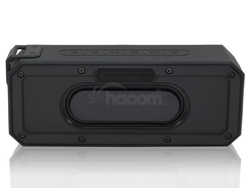 Pláva a hrá!Vodotesný kompaktný bezdrôtový reproduktor s výdržou batérie 20h. Môžete ho vziať na párty k bazénu, na splavovanie rieky na kanoe, alebo do prírody. Voda mu nevadí. Pláva a ešte k tomu hrá :-) Jeho pogumovaný povrch navyše zvyšuje odolnosť proti pádu. Pútko a priložený povrázok umožňuje rýchle uchytenie reproduktora k batohu, či taške, ktorý vďaka tomuto nikde nezabudnite.