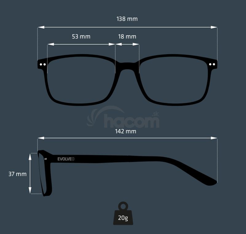 S hmotnosťou iba dvadsať gramov sú tieto okuliare tak ľahké, že ich môžete nosiť celý deň bez toho, aby ste ich vôbec vnímali. EVOLVEO BlueBlock40 nezatvárajú oči ani pred užívateľmi s atypicky širokou hlavou . Ich bočnice sa totiž môžu vyklopiť až o 45 stupňov smerom von, takže si ich pohodlne nasadí skutočne každý.