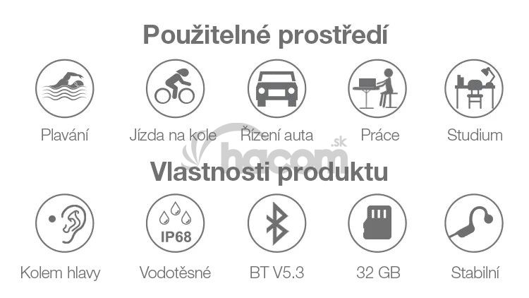 - EVOLVEO BoneSwim Pro MP3 32GB, bezdrôtová BSP-MP3-32GB-B