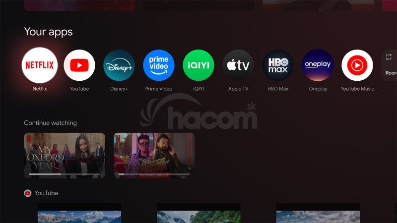 • podpora aplikácií Netflix, Disney+, Prime video, Oneplay, HBO Max, Apple TV, Skylink Live TV, YouTube, Spotify
