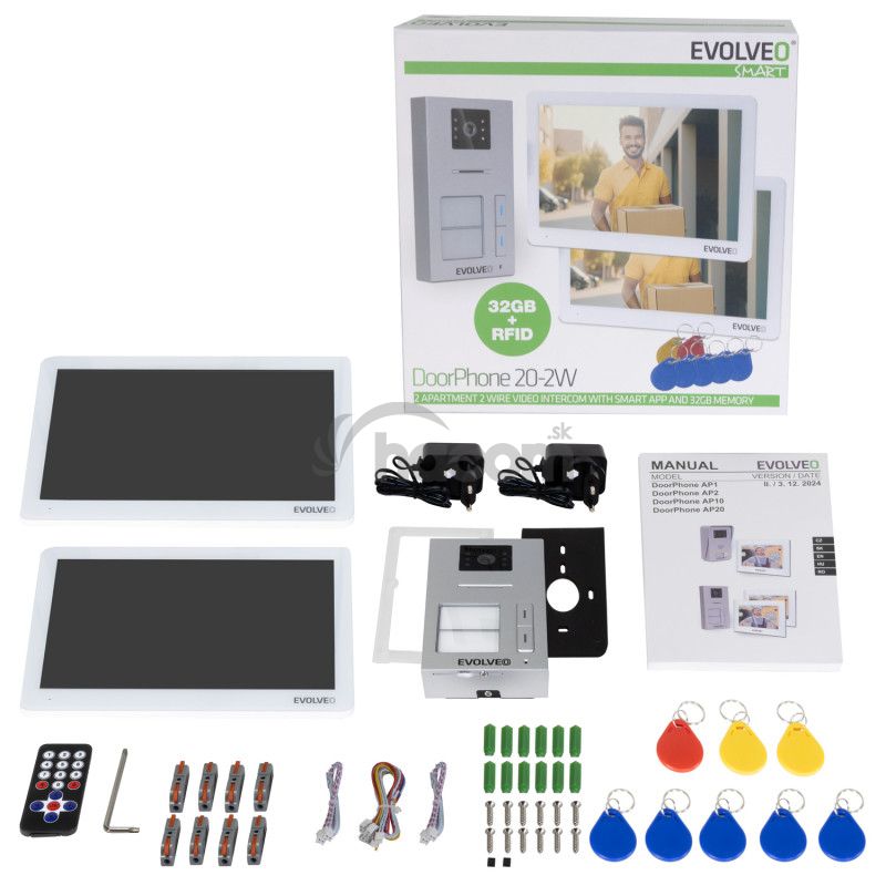 - EVOLVEO DoorPhone 20-2W - 2-drôtový videotelefón s aplikáciou pre dve domácnosti a 32GB pamäťou DP-20-2-W