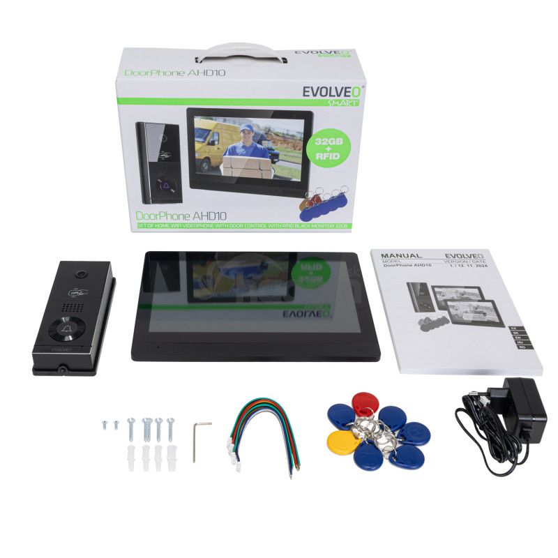 - EVOLVEO DoorPhone AHD10, Sada domáceho WiFi videotelefónu s ovládaním dverí a RFID, černý 10" monito DPAHD10-B