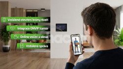 V praxi to znamená, že jedným relé môžete ovládať napríklad elektrický zámok vstupných dverí alebo bránky , zatiaľ čo druhé relé môže slúžiť pre posuvnú bránu, krídlovú bránu alebo garážové brány . Ovládanie je možné priamo z monitora, cez mobilnú aplikáciu alebo prostredníctvom prístupového systému (odtlačok / RFID).