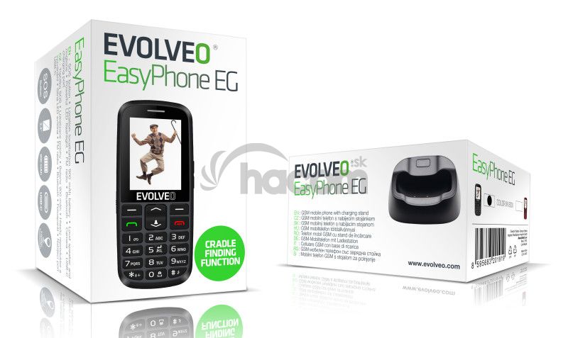 EVOLVEO EasyPhone EG, mobilný telefón pre seniorov s nabíjacím stojanom (čierna farba)