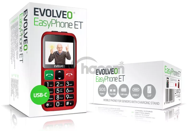 • EVOLVEO EasyPhone ET, mobilný telefón pre seniorov s nabíjacím stojanom, červená (PartNo: EP-851-ETR )