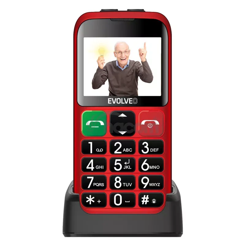 EVOLVEO EasyPhone ET, mobilný telefón pre seniorov s nabíjacím stojanom, červená
