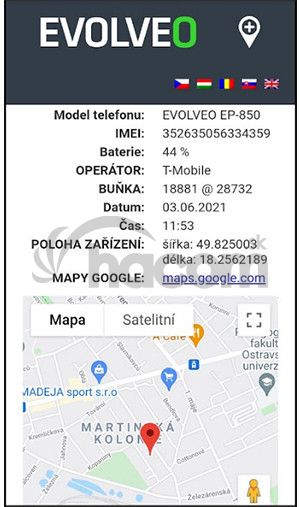 • SOS tlačidlo na zadnej strane pre SOS volania a SMS s geolokáciou
