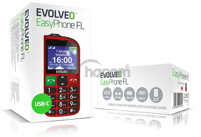 - EVOLVEO EasyPhone FL, mobilný telefón pre seniorov s nabíjacím stojanom, červená EP-801-FLR