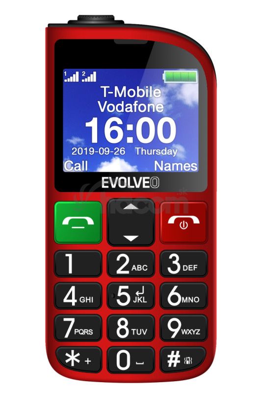 - EVOLVEO EasyPhone FM, mobilný telefón pre seniorov s nabíjacím stojanom (červená farba) EP-800-FMR