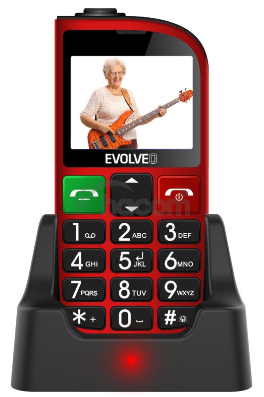 EVOLVEO EasyPhone FM, mobilný telefón pre seniorov s nabíjacím stojanom (červená farba) EP-800-FMR