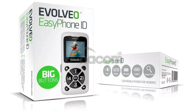 EVOLVEO EasyPhone ID, mobilný telefón pre seniorov, biela