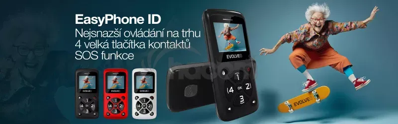 • EVOLVEO EasyPhone ID, mobilný telefón pre seniorov, čierna (PartNo EP-400-IDB )