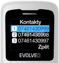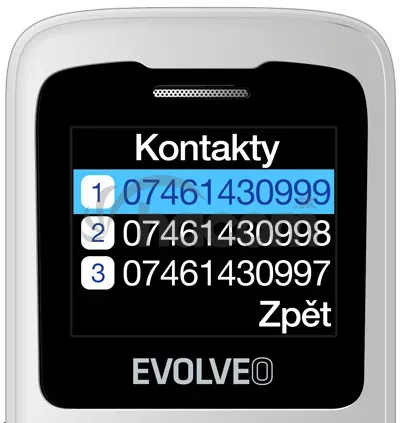 • Kapacita pre uloženie kontaktov: 4 hlavné kontakty + 5 SOS kontaktov