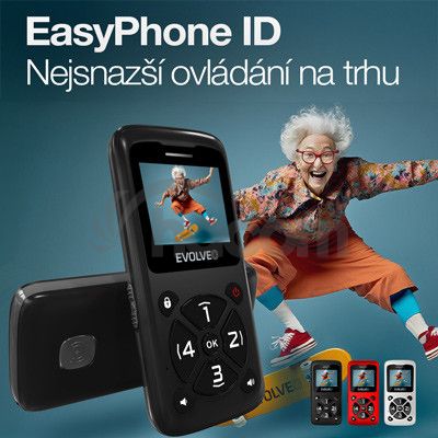 • EVOLVEO EasyPhone ID, mobilný telefón pre seniorov, čierna (PartNo EP-400-IDB )