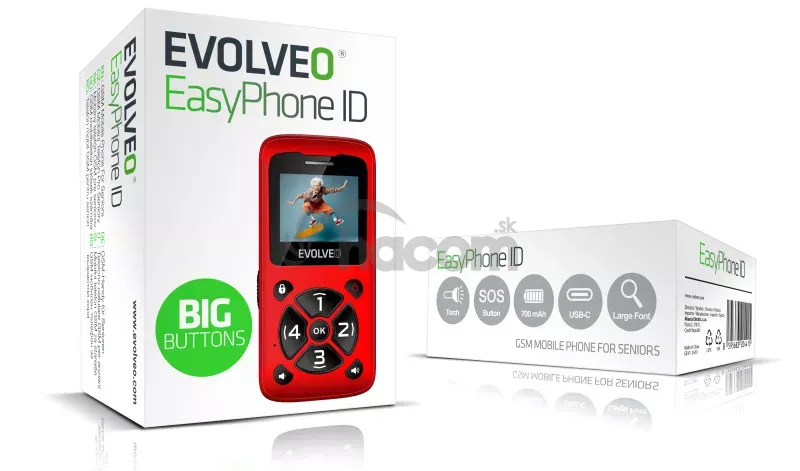 • EVOLVEO EasyPhone ID, mobilný telefón pre seniorov, červená (PartNo EP-400-IDR)