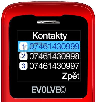 • Kapacita pre uloženie kontaktov: 4 hlavné kontakty + 5 SOS kontaktov