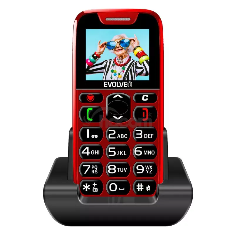 EVOLVEO EasyPhone, mobilný telefón pre seniorov s nabíjacím stojanom, červená