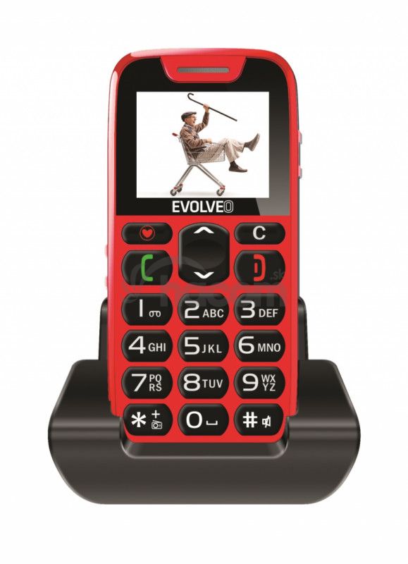 EVOLVEO EasyPhone, mobilný telefón pre seniorov s nabíjacím stojanom (červená farba) EP-500-RED