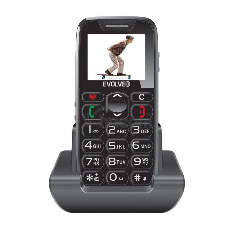 EVOLVEO EasyPhone, mobilný telefón pre seniorov s nabíjacím stojanom (čierna farba) EP-500-BLK
