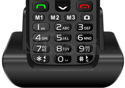 Telefón je dodávaný s praktickým nabíjacím stojanom, do ktorého stačí telefón zasunúť a nabíjanie batérie sa spustí automaticky, čo uľahčuje a spríjemňuje každodenné používanie. Vďaka výdrži batérie až 8 dní je telefón stále pripravený na použitie bez toho, aby užívateľ musel často hľadať zásuvku na nabíjanie.