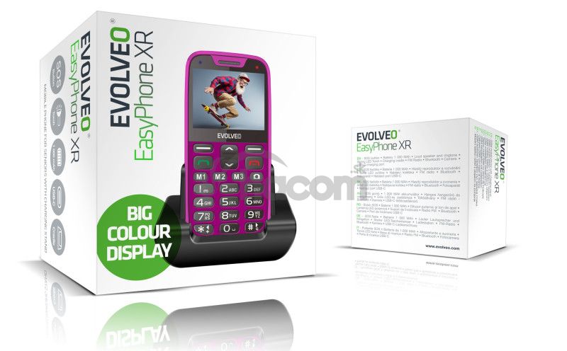 • EVOLVEO EasyPhone XR, mobilný telefón pre seniorov s nabíjacím stojanom, ružová (PartNo: EP-601-XR-PK)