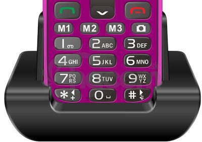 Telefón je dodávaný s praktickým nabíjacím stojanom, do ktorého stačí telefón zasunúť a nabíjanie batérie sa spustí automaticky, čo uľahčuje a spríjemňuje každodenné používanie. Vďaka výdrži batérie až 8 dní je telefón stále pripravený na použitie bez toho, aby užívateľ musel často hľadať zásuvku na nabíjanie.