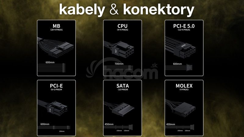 EVOLVEO G1000 PCIe 5.0, zdroj 1000W, ATX 3.0, 80+ GOLD, 90% účinnosť, aPFC, 140mm ventilátor, retail