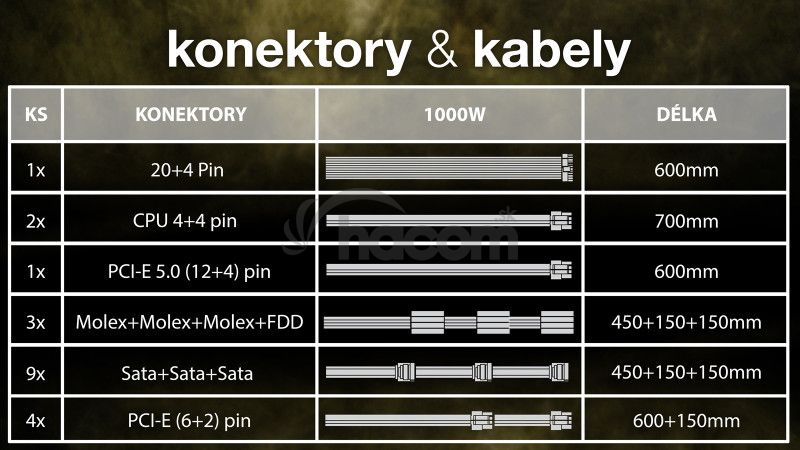 - EVOLVEO G1000 PCIe 5.0, zdroj 1000 W, ATX 3.0, 80+ EG1000R