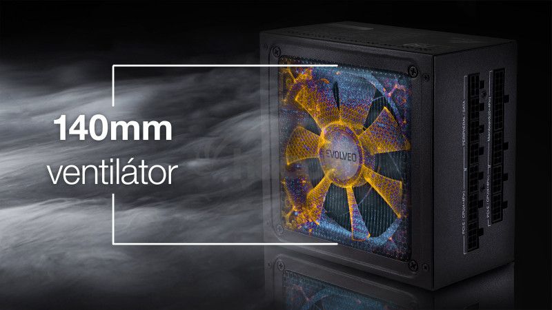 Zdroj EVOLVEO G1000 je ideálna voľba pre herný počítač, ktorý má osadenú grafickú kartu s rozhraním PCIe 5.0. Vyníma sa predovšetkým účinnosťou s certifikáciou 80 PLUS GOLD zaručujúcou účinnosť až 90%. Zdroj je plne modulárny, z toho dôvodu je možné pripojiť iba najnutnejšie káble. Súčasťou je aj tichý 140mm ventilátor. V kombinácii so semi-pasívnym chladením do 30% zaťaženia je zaručený tichý chod zdroja. Semipasívne chladenie, ventilátor zdroja je obvykle neaktívny a spustí sa iba pri prekročení 20% hranice výkonu zdroja. Neoddeliteľnou súčasťou sú aj ochrany proti poškodeniu komponentov v PC a aj zdroje samotného.