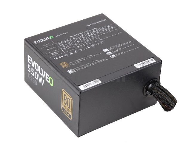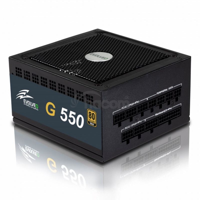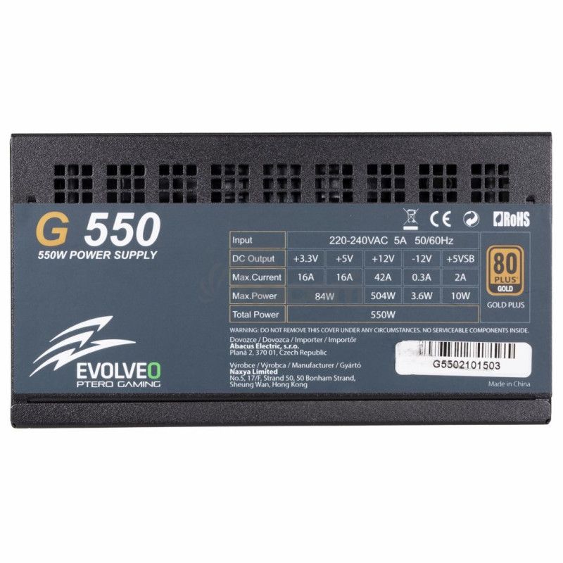 - EVOLVEO G550 zdroj 550W, 80+ GOLD, 90% účinnosť, APFC, 140mm ventilátor, retail E-G550R