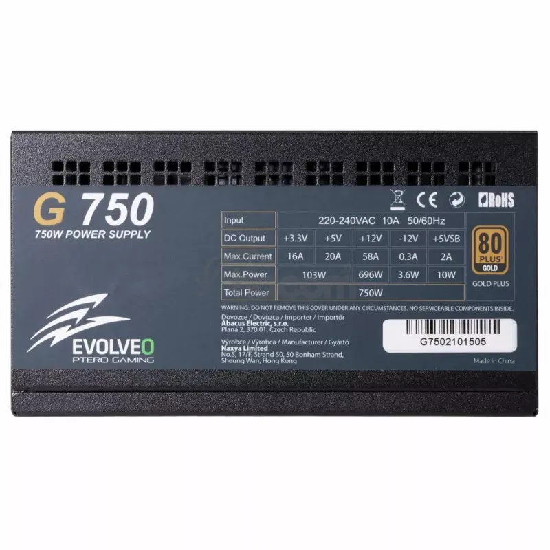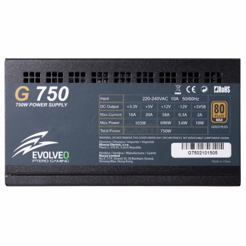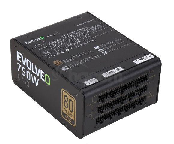 - EVOLVEO G750 zdroj 750W, 80+ GOLD, 90% účinnosť, APFC, 140mm ventilátor, retail E-G750R