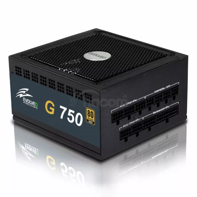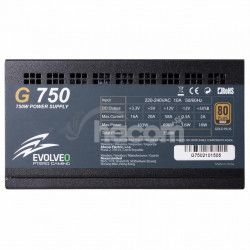 Herný počítačový zdroj 750W, ATX, certifikácia 80 PLUS Gold, účinnosť 90%, 14cm ventilátor, modulárneZdroj EVOLVEO G750 je ideálna voľba do akéhokoľvek herného počítača. Vyníma sa predovšetkým účinnosťou s certifikáciou 80 PLUS GOLD zaručujúci účinnosť až 90%. Zdroj je plne modulárny, z toho dôvodu je možné pripojiť len najnutnejšie káble. Súčasťou je aj tichý 140mm ventilátor. V kombinácii so semi-pasívnom chladení do 30% zaťažení je zaručený tichý chod zdroja. Neoddeliteľnou súčasťou sú aj ochrany proti poškodeniu komponentov v PC a aj zdroje samotného.