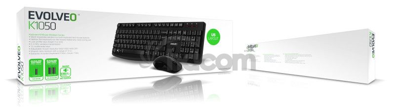 EVOLVEO K1050, tichý set bezdr. klávesnice a myši, US INTL, čierna