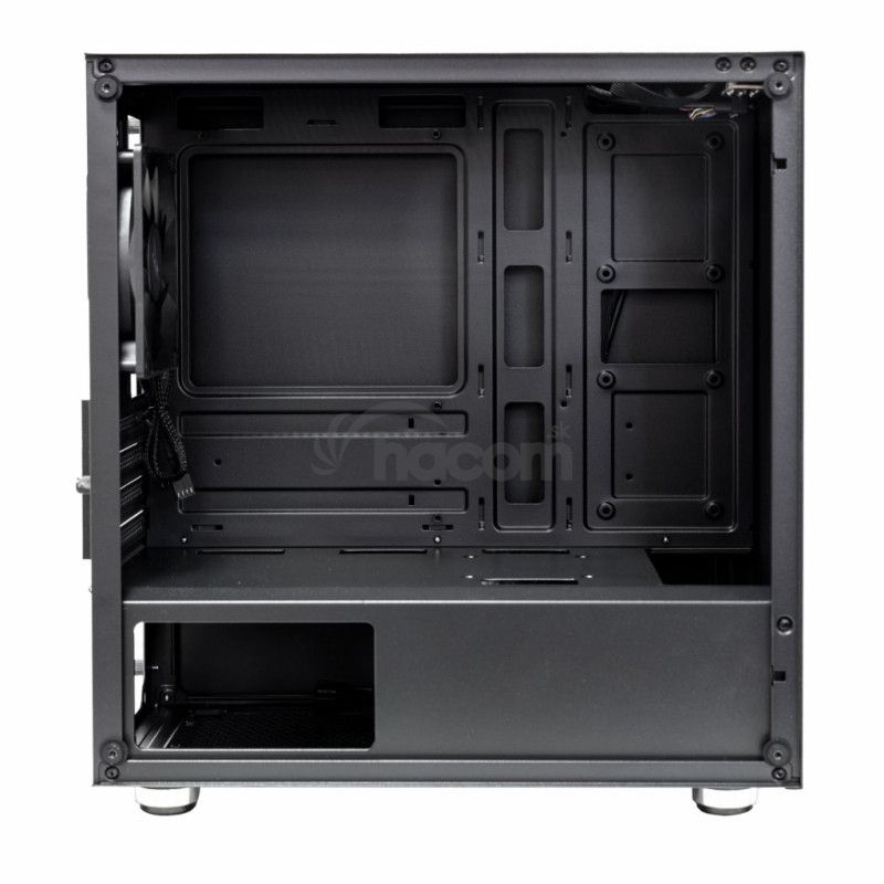 EVOLVEO M4, case mATXHerná mATX skriňa s inštalovaným RGB rainbow 120 mm ventilátorom a bočnicou z temerovaného skla. Skriňa je určená pre základné dosky podporujúce platformu Intel aj AMD. Mimo formátu mATX je kompatibilný aj s formátom Mini ITX. Napájací zdroj sa umiestňuje do dolnej časti skrine. Spodná mriežka je osadená vysúvacím prachovým filtrom. Ovládanie ventilátorov je možné pomocou pripojenia k základnej doske.