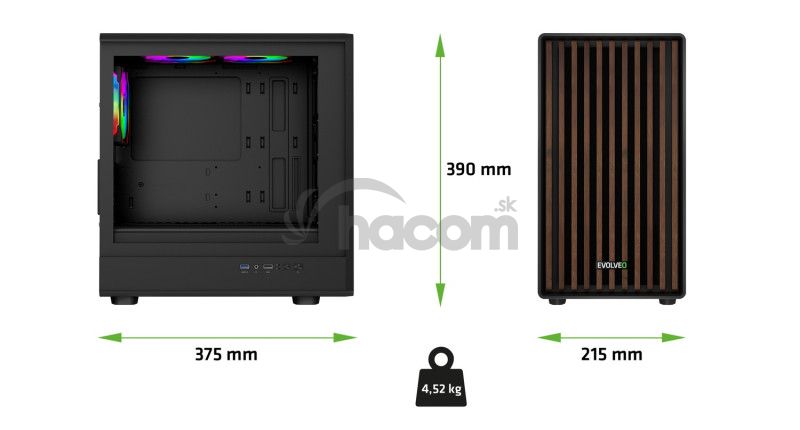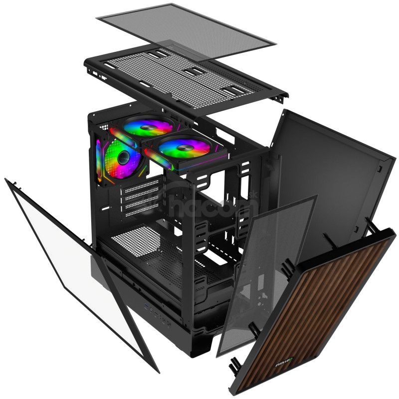 EVOLVEO Panthera, skriňa mATX, 3x ARGB ventilátor 120mm, drevený predný panel + sklenená bočnica