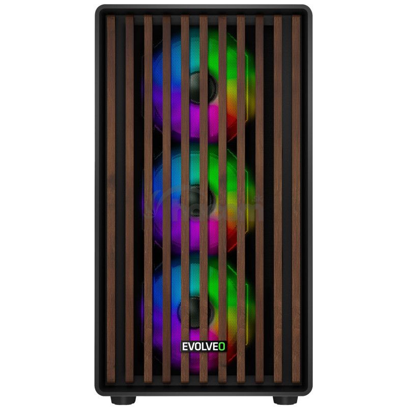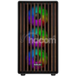 EVOLVEO Panthera, skriňa mATX, 6x ARGB ventilátor 120mm, drevený predný panel + sklenená bočnica