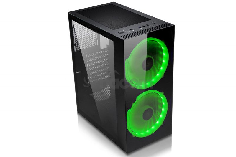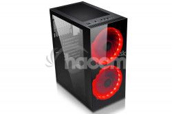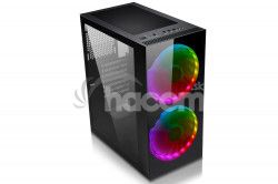 Herný ATX midi tower s inštalovanými 2x RGB rainbow 200 mm ventilátory, ktoré sa ovládajú pomocou LED tlačidla na hornej strane ovládacieho panela. Predné a obe bočné strany sú z tvrdeného skla. Skriňa je určená pre základné dosky podporujúce platformu Intel i AMD. Mimo formátu ATX je kompatibilná is formátom Micro ATXa Mini ITX. Napájací zdroj sa umiestňuje do dolnej časti skrine. Spodná mriežka je osadená vysúvacím prachovým filtrom, horná prachový filter je uchytený magnetmi a je odnímateľný. Ventilátory sú 4pin s MOLEX napájaním a pripájajú sa vzájomne na seba bez nutnosti akéhokoľvek radiča. Ovládanie ventilátorov je možné len pomocou LED tlačidla na kontrolnom paneli skrine.Základná špecifikácia: