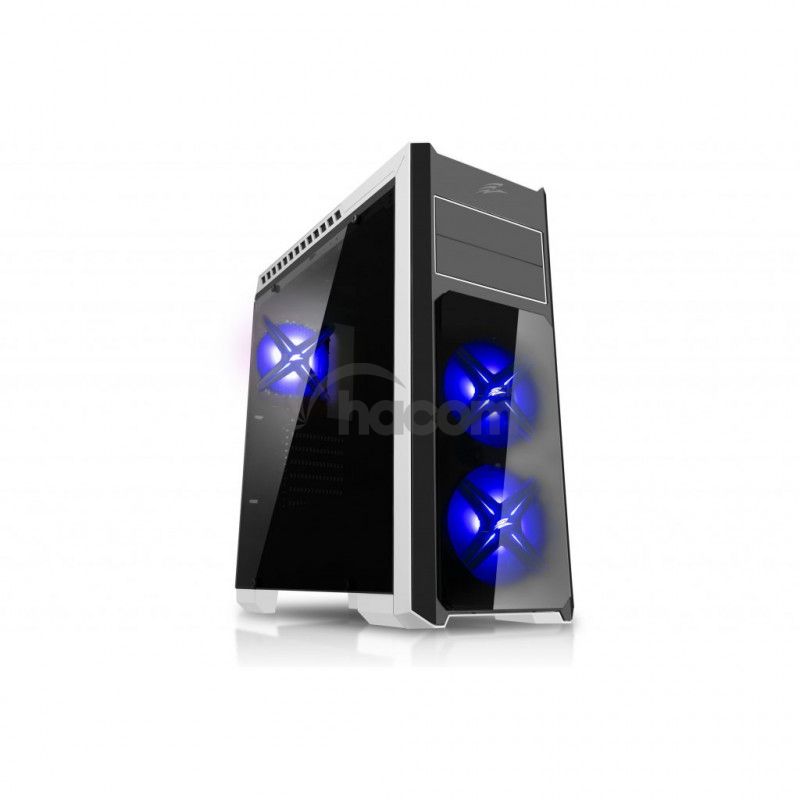 EVOLVEO Ray 4 CB .Herná počítačová skriňa midi tower ATX, 3 x 120 mm PWM ventilátor, predná strana z tvrdeného skla, priehľadná bočnica, bez zdroja, čierna