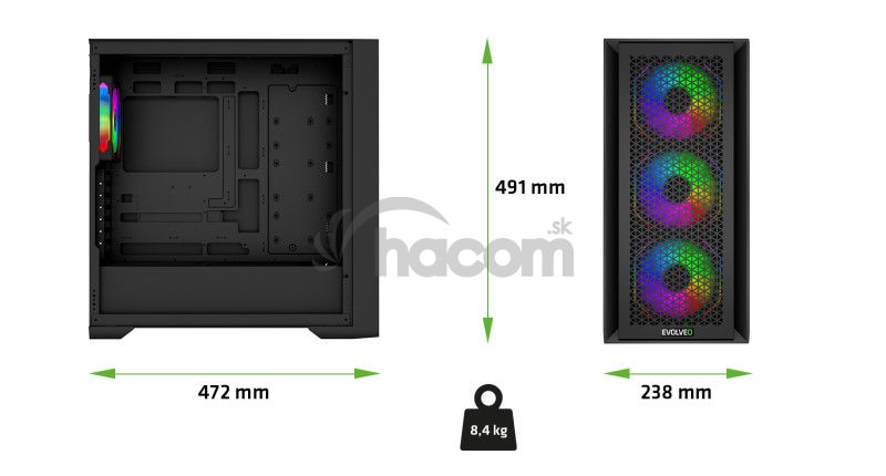 EVOLVEO Rhino, eATX/ATX/4x ARGB 120mm/bočnice RHINO-BK-4