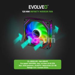 Táto PC skriňa je sídlom nielen pre váš hardvér, ale aj pre štvoricu ventilátorov Infinity Mirror . Tie sú strategicky rozmiestnené a perfektne vyzbrojené na boj proti prehrievaniu počítača, avšak ako je pri EVOLVEO Rhino-BK-4 dobrým zvykom, dbajú aj na eleganciu. Zdobia ich Multi ARGB podsvietenie s 22 LED diódami (8 uprostred a 14 na vonkajšom obvode každého ventilátora), doplnené o pôsobivý zrcadlový dizajn . Vďaka sústave zrkadiel sa svetlo odráža a znásobuje, až sa vám zdá, že v PC skrini svietia stovky žiaroviek. Ide o naozaj úchvatný efekt, ktorý dáva hernej atmosfére tú pravú šťavu.