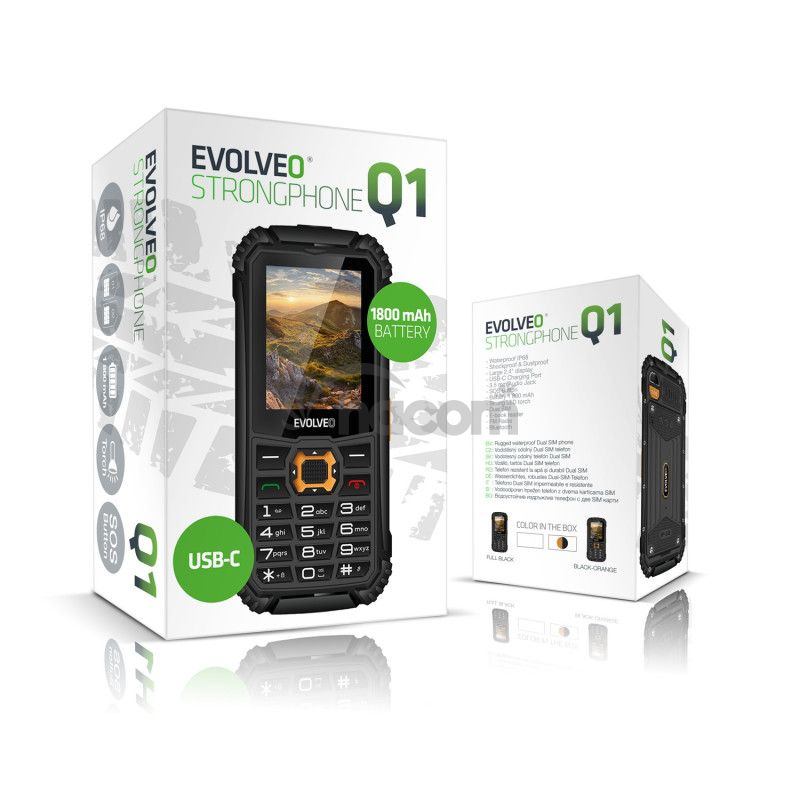 - EVOLVEO StrongPhone Q1, vodotesný odolný Dual SIM telefón, černo-oranžový SGP-Q1-BO