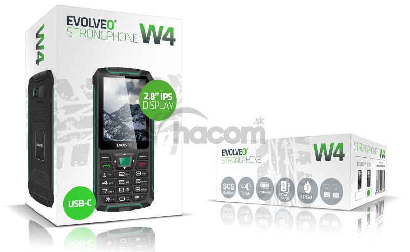 - EVOLVEO StrongPhone W4, vodotesný odolný Dual SIM telefón, čierno-zelená SGP-W4-BG