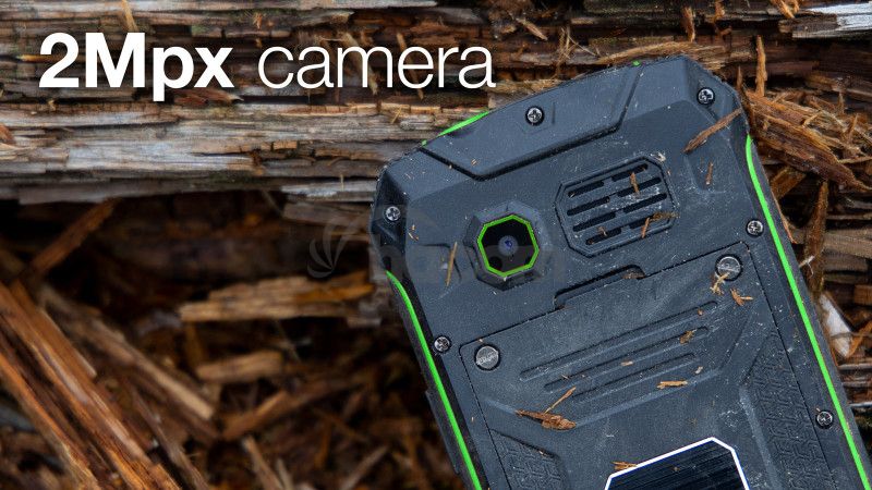Súčasťou výbavy odolného telefónu je 2 Mpx fotoaparát, výkonné LED svietidlo alebo vstavané FM rádio s integrovanou anténou a automatickým ladením staníc. Z ďalšej výbavy môžete využiť napríklad kalendár, budíky alebo kalkulačku.