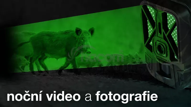 Video je možné zaznamenávať v najvyššej kvalite 4k, nočný záznam alebo fotografovanie umožní 58 infračervených prisvetľovacích diód s vlnovou dĺžkou 940nm, ktorá je pre ľudské aj zvieracie oko neviditeľná a nevyplaší Vám tak zver pred objektívom. K snímaniu pohybu dochádza v širokom zornom poli 120° pomocou PIR čidla s nastaviteľnou citlivosťou snímania, ktoré zaručia automatické spustenie záznamu vždy, keď zver prejde pred nastavenou kamerou.
