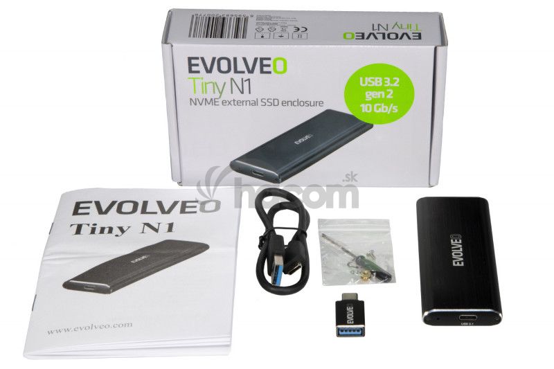 - EVOLVEO Tiny N1, 10Gb / s, NVME externý rámček, USB A 3.1 HDEtinyn1