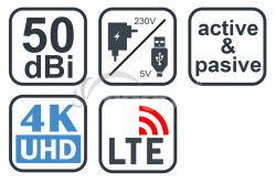 Elegantný izbová anténa pre príjem digitálnej aj analógovej TV. Zosilňovač antény je možné napájať vďaka USB káblu dvoma spôsobmi. Napájanie pomocou adaptéra 220V a ďalej napájanie z USB konektora. Druhý spôsob ocení užívateľ, ktorý chce sledovať TV napr. Na NB pomocou USB tuneru. Podstavec je odnímateľný a anténu tak možno uchytiť aj napr. Na stenu.Špecifikácia: