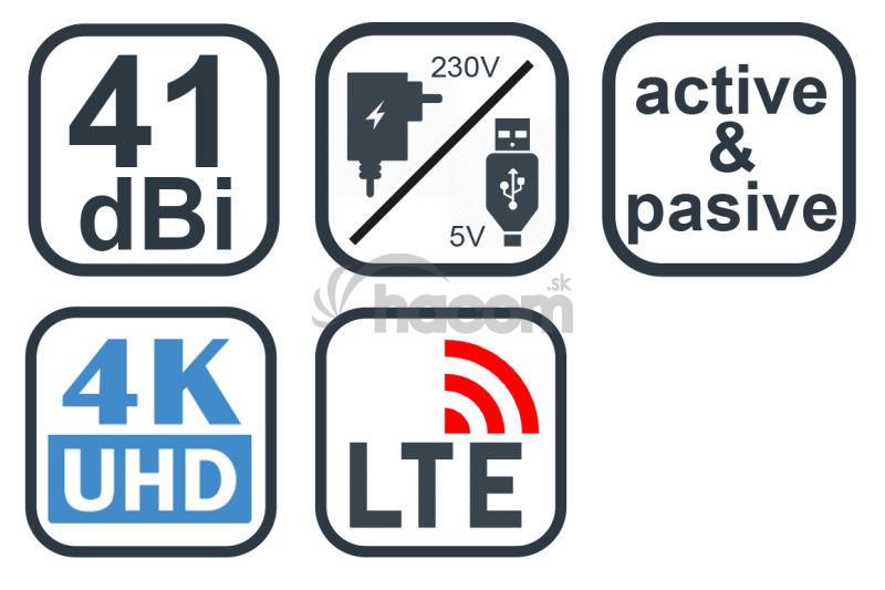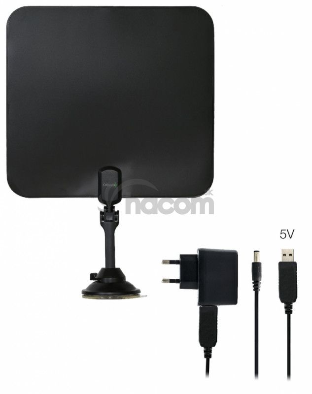 Elegantný izbová anténa pre príjem digitálnej aj analógovej TV. Zosilňovač antény je možné napájať vďaka USB káblu dvoma spôsobmi. Napájanie pomocou adaptéra 230V a ďalej napájanie z USB konektora. Druhý spôsob ocení užívateľ, ktorý chce sledovať TV napr. Na NB pomocou USB tuneru. Anténu možné prilepiť sadou 3M obojstranných lepiacich pások na stenu, nábytok, alebo umiestniť do podstavca. Podlstavec je vybavený prísavkou.Špecifikácia: