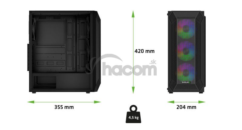 EVOLVEO Xenon, skriňa ATX, 4x ARGB ventilátor 120mm, predný panel airflow mesh, čierna