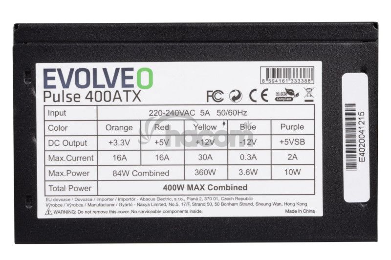 - EVOLVEO zdroj 400W ATX, tichý, bulk EP400PP12B