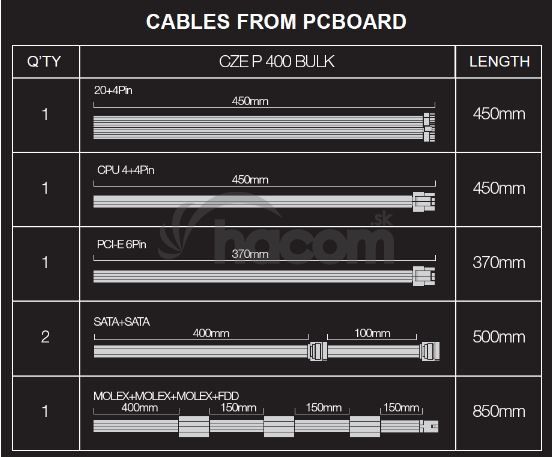 • 1x napájací kábel s 3x MOLEX konektorom a 1x FD3